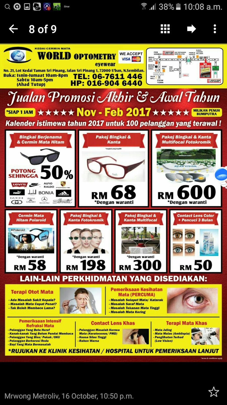 Cermin mata murah seremban. Kedai yang maha maksudkan itu ialah eyes vision optical yang teletak di aras g sungei wang plaza kalau nak senang cari kedai cermin mata ni ikut nombor unit iaitu no g 096 masa maha datang hari minggu hari tu memang ramai orang kat situ sebab bukan sahaja harga murah tapi juga service yang cepat dan ramah mesra korang jangan takut dan malu mereka akan bantuk apa yang korang perlukan. Hey siapa cakap cermin mata hanya untuk mereka yang ada masalah rabun dekat dan rabun jauh je. Tapi gambar sliding door dekat dapur rumah aku takde dalam pc ni pulak sorryyyy. Dah la murah bingkai bingkai cermin mata yang ditawarkan tu 80 flexible tak patah.
