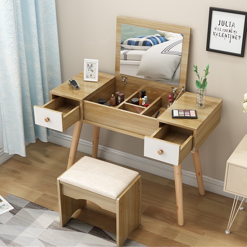 Meja persalinan dengan cermin adalah cara terbaik untuk menyimpan kosmetik aksesori dan peralatan penjagaan rambut.
