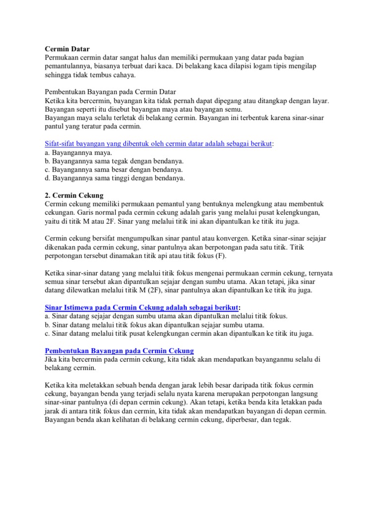 Asal sobat hitung ketahui sejak 8000 tahun silam manusia telah mengenal cermin alam dari bebatuan yang mengkilap. Cermin sangat familiar bagi manusia. Sesuai dengan namanya cermin ini memiliki bentuk permukaan yang melengkung pada bagian belakangnya. Cermin datar merupakan salah satu cermin memiliki permukaan yang rata datar dan tidak melengkung pada bidang pantulnya.