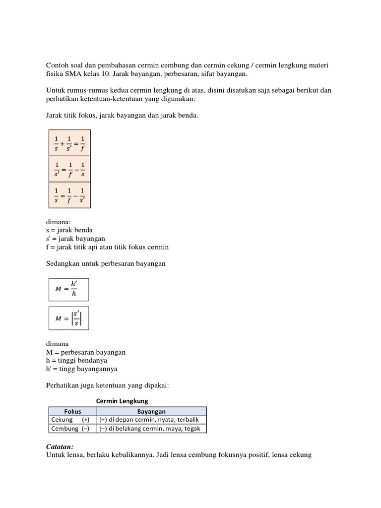 Contoh Soal Tentang Cermin Cekung Dan Cembung