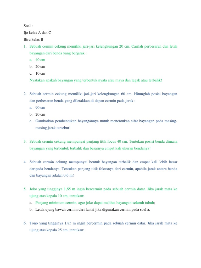 Soal 1 sebuah cermin cekung memiliki jari jari kelengkungan 10 cm.