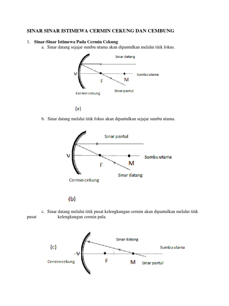 Gambarkan Sinar Sinar Istimewa Cermin Cekung