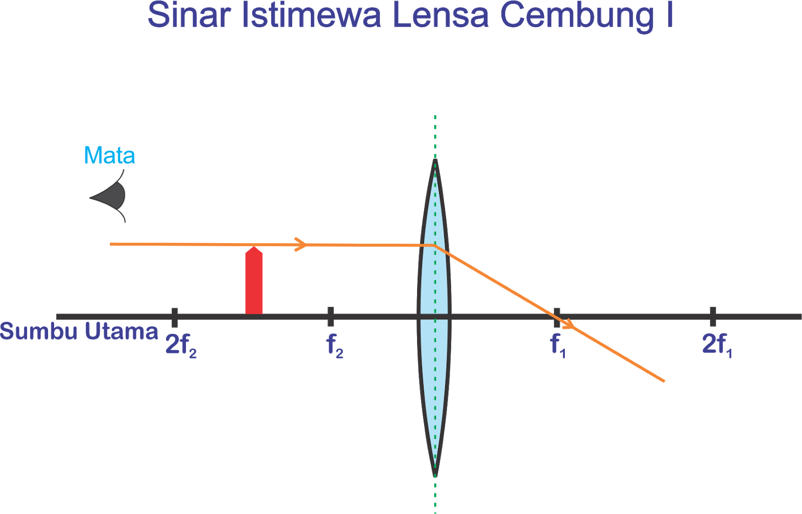 Lensa cekung atau lensa konkaf adalah lensa yang permukaan lengkungnya menghadap ke dalam. Sinar datang seolah olah menuju titik fokus lensa pertama f1 akan dibiaskan sejajar sumbu utama. Sifat bayangan yang dihasilkan oleh lensa cekung adalah maya tegak diperkecil dan. Berikut ini terdapat sinar istimewa pada lensa cembung yakni sebagai berikut.
