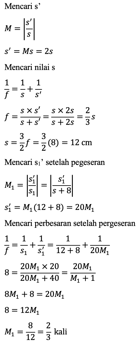 S 3s nyata 3 kali lebih besar f 30 cm.