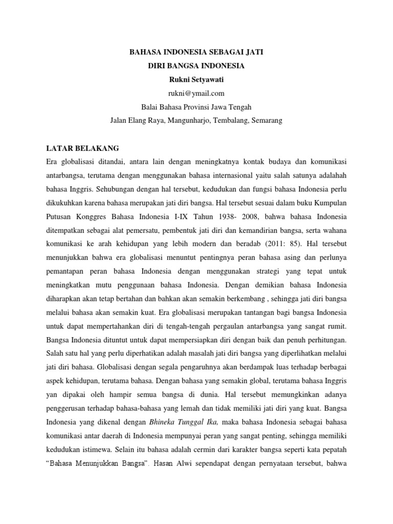 Jati diri kita sebagai bagian dari suku suku di nusantara dan sebagai bangsa yang mandiri tercermin dari bahasanya. Pada kesempatan kali ini marilah kita mengucap syukur kepada allah swt yang telah memberikan rahmat dan karunia nya kepada kita semua sehingga kita bisa berjumpa di pagi hari yang cerah ini untuk memperingati hari pendidikan nasional. Pendidikan berkarakter sangatlah penting untuk kelangsungan hidup di masyarakat dalam berinteraksi sosial. Sebab tidak menutup kemungkinan karakter yang.