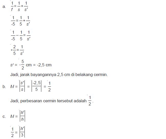 Selain menggunakan jarak fokus f jarak benda s dan jarak bayangan s terdapat pula rumus mengenai perbesaran benda pada cermin cekung untuk mengetahui rumus bayangan pada cermin cekung dapat dinyatakan dengan persamaan di bawah ini. Keduanya memiliki sifat dan karakteristik yang berbeda. F fokus cermin. Agar mampu menerapkan rumus perhitungan dengan lebih baik anda bisa menyimak beberapa contoh soal tentang cermin cekung beserta dengan pembahasannya.
