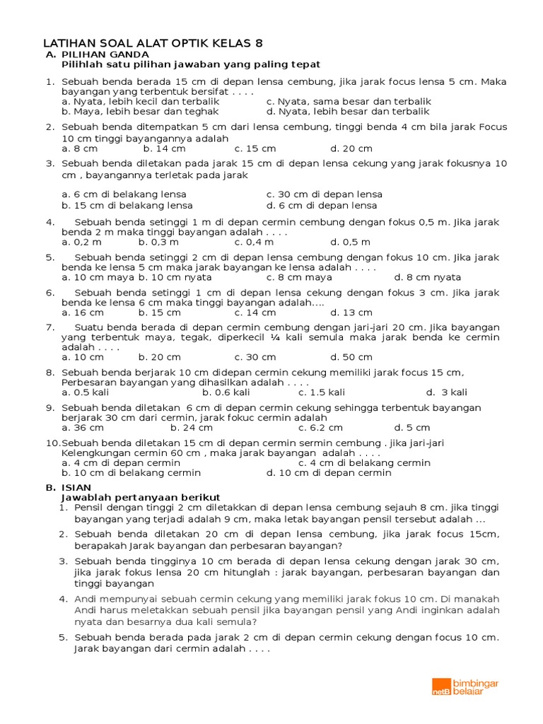 Soal Fisika Cermin Dan Lensa Kelas 8
