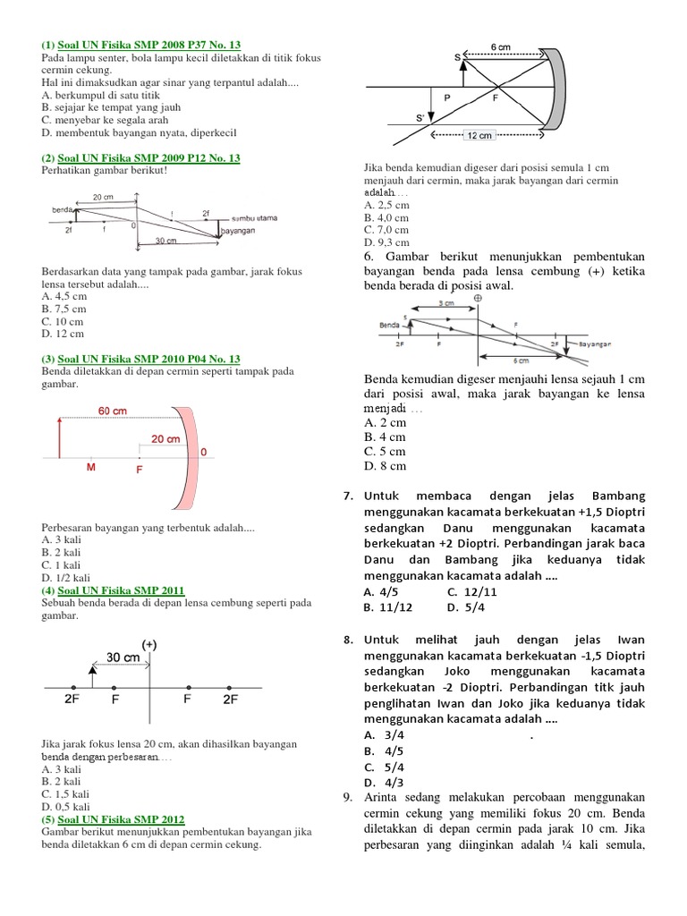 Soal tentang cermin cekung smp. Contoh soal cermin cekung. Demikianlah artikel contoh soal materi lensa alat optik cahaya dan cermin beserta pembahasannya ipa smp semoga dapat membantu sobat dalam belajar oh ya jika sobat ingin melihat soal soal lainnya dengan materi yang berbeda silakan sobat klik contoh soal ipa di menu atas. Untuk pembahasan soal soal latihan yang berkaitan dengan cermin cembung akan dibahas pada bagian berikutnya. Soal fisika smp kelas 8 materi cahayasifat sifat bayangan pada cermin datar yaitu tegak sama besar dengan benda dan maya.